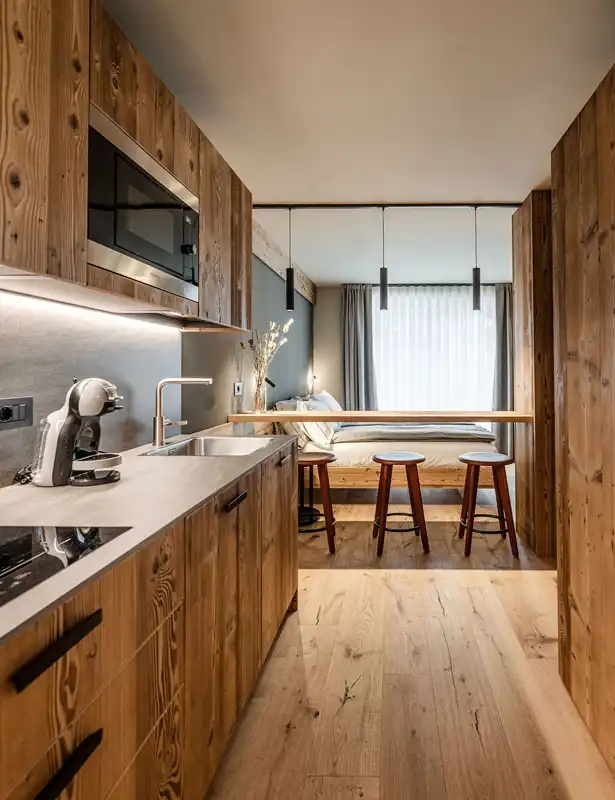El Giof Alpine Home è progettato per offrire un'atmosfera di calda accoglienza tipica dell'ospitalità trentina della Val di Sole. Le suite (i nostri appartamenti Prime) e gli appartamenti standard sono spaziosi, luminosi e arredati con gusto, combinando design moderno con elementi tradizionali in legno. Ogni unità è dotata di massimo comfort, incluse cucine completamente attrezzate per l'autonomia degli ospiti, zone living accoglienti, balconi e terrazze. Sono inoltre inclusi servizi moderni come TV satellitare, Wi-Fi gratuito, cassaforte, lavastoviglie e lavatrice.