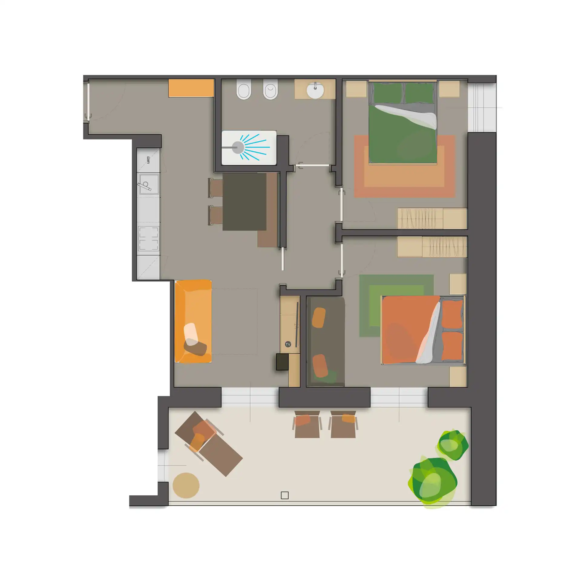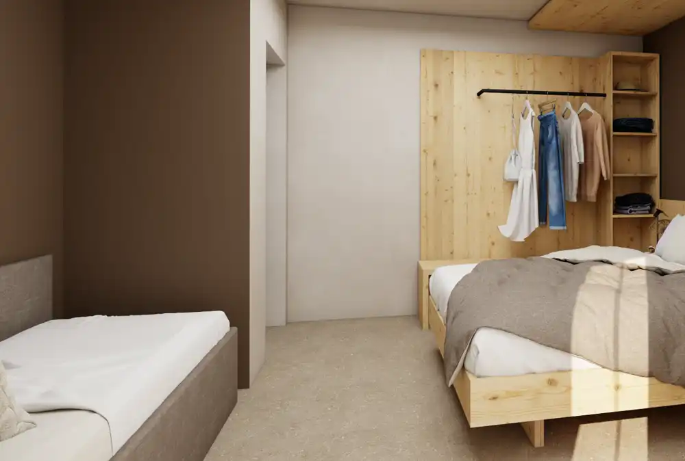 Gli Appartamenti Standard offrono un’accoglienza calorosa e funzionale, perfetta per una vacanza in famiglia o un soggiorno attivo. Questi bilocali e trilocali spaziosi mantengono tutto il fascino tipico delle case di montagna, con ambienti luminosi, cucina attrezzata e zone notte flessibili. Un’ottima soluzione per chi cerca bilocali o trilocali per famiglie o gruppi, con un eccellente rapporto qualità-prezzo e la libertà di vivere la montagna in autonomia, senza rinunciare alla comodità.