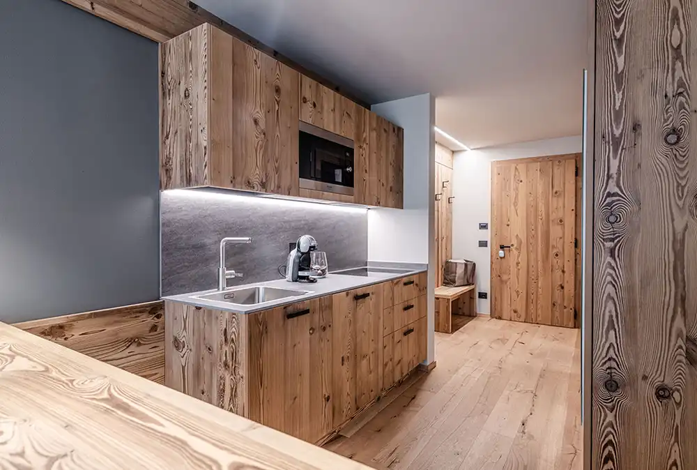Realizzati con legno antico, finiture di pregio e materiali naturali, ogni dettaglio racconta il calore dell’accoglienza alpina.