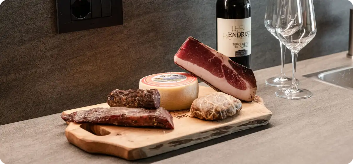 Ad accogliervi troverete un set wellness completo con accappatoio, telo e ciabatte, un tagliere di frutta fresca di stagione e una bottiglia di Trento DOC per brindare al vostro momento speciale. Un’occasione per rallentare, rilassarsi e riscoprire il piacere di stare insieme, immersi in un’atmosfera intima e rigenerante.