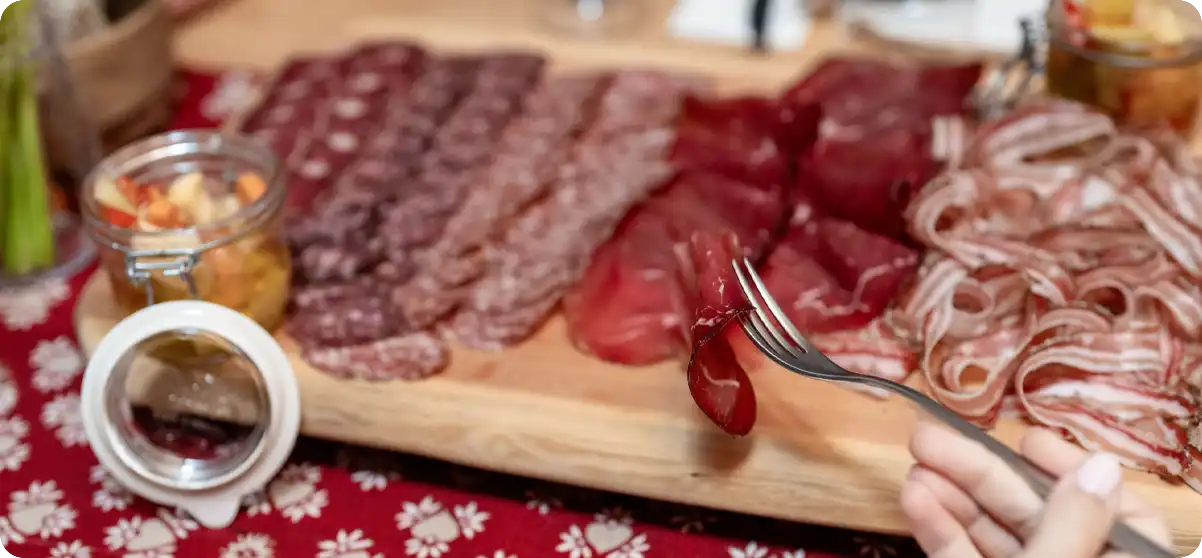 Qui, al termine dell’escursione, vi attende un momento conviviale: una degustazione di prodotti tipici locali, con protagonisti i salumi artigianali Brida Brothers. Durante questo momento, Andrea condividerà la filosofia produttiva, l’origine delle materie prime e le tecniche di lavorazione che rendono ogni prodotto espressione autentica della tradizione trentina.